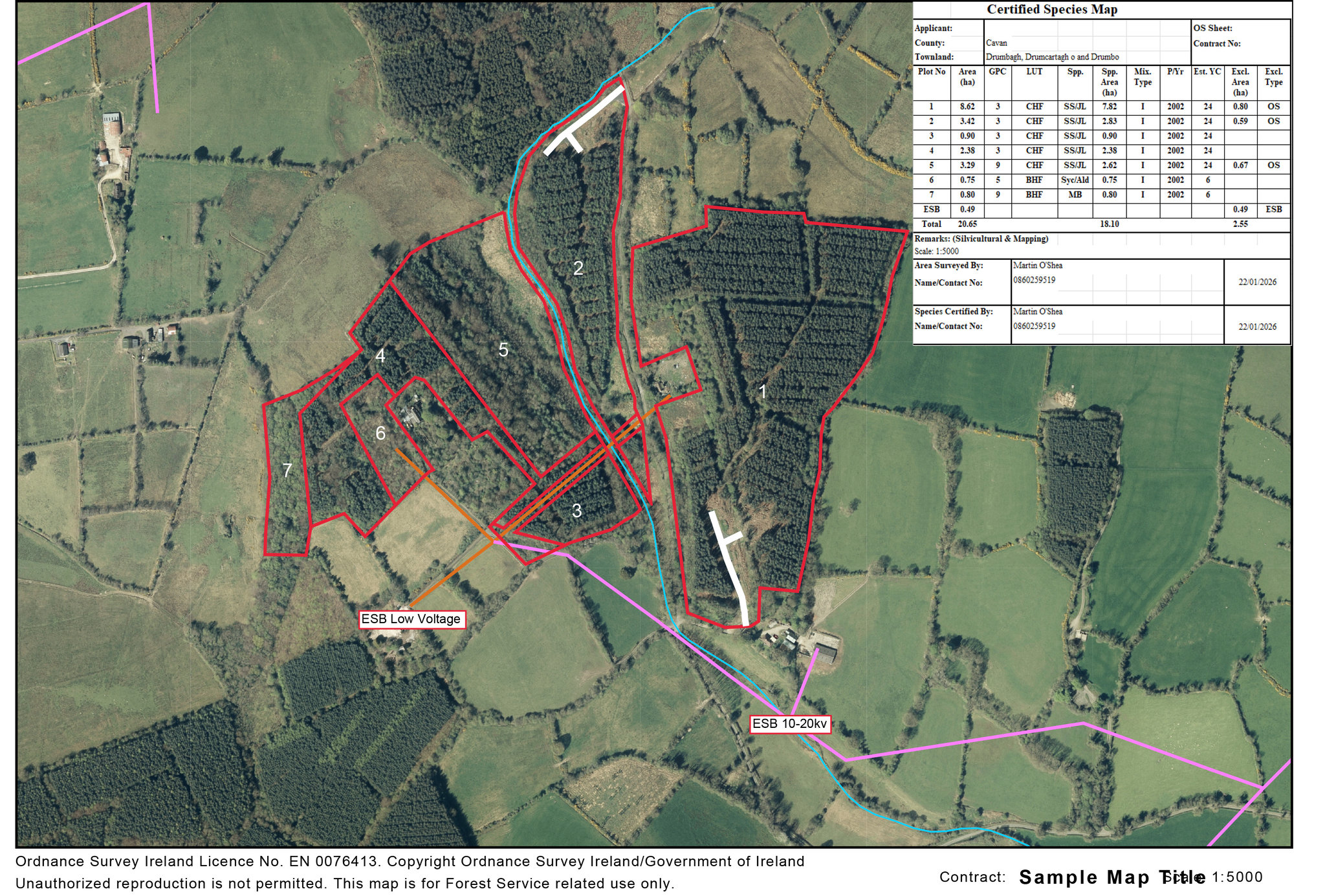 This property had a road constructed and was first thinned in 2019/There was significant wind damage following Storm Eowyn, all SS/JL plots were damaged and will need to be clearfelled. The SS within plot 6 will be removed as required