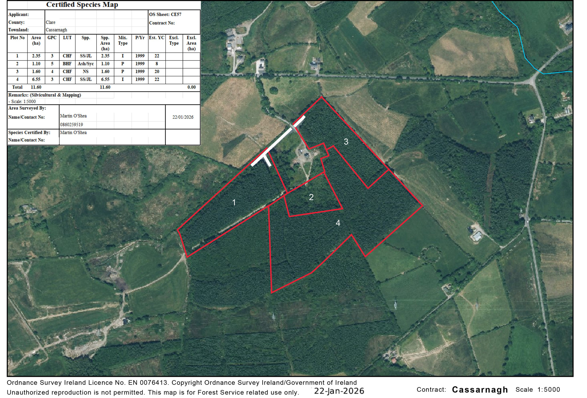 284m forest road was constructed in November 2022/Plots 2 and 4 (7.65ha) were severly damaged following Storm Eowyn in January/The windblow has been put out to tender for windblow clearance so can be sold pre or post clearfell