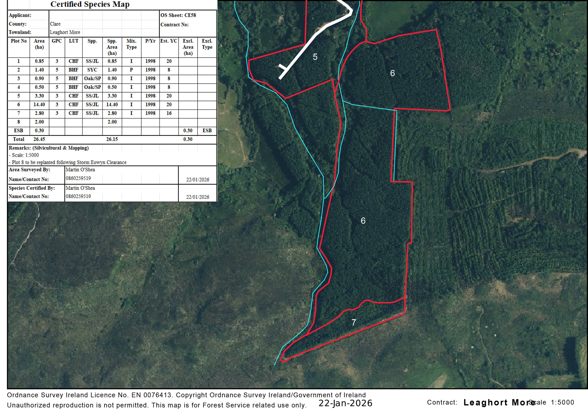 This windblow has now been harvested and will be replanted in the new year. A 654m forest road was constructed in November 2022/Approx 2.85ha of windblow cleared following Storm Eowyn