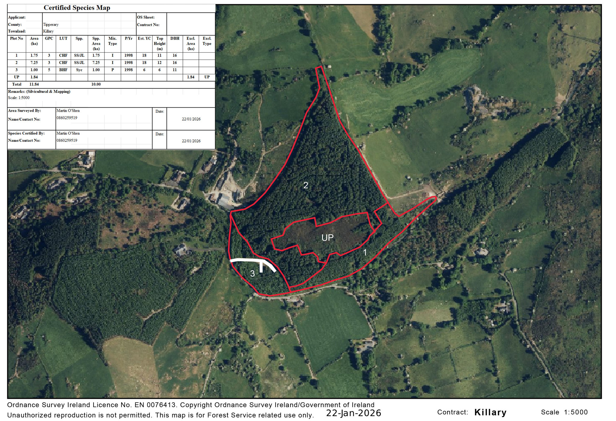 This property has a forest road/This property was second thinned in 2023/No damage noted following Storm Eowyn. UP = unproductive |